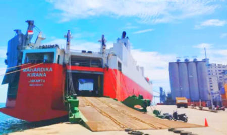 untuk menurunkan mobil/motor dari kapal ke dermaga di pelabuhan tujuan.