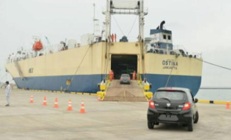 untuk menurunkan mobil/motor dari kapal ke dermaga di pelabuhan tujuan.