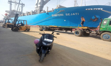mengambil kendaraan mobil/motor di atas kapal.