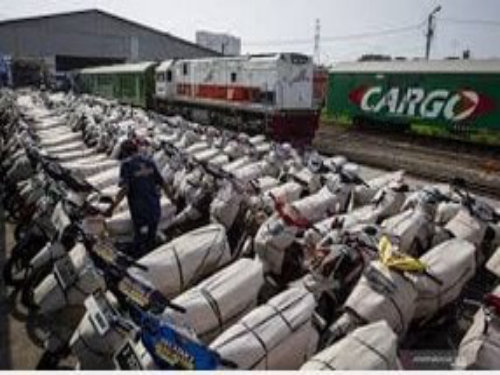 Pengangkutan barang dan kendaraan motor menggunakan kereta api.